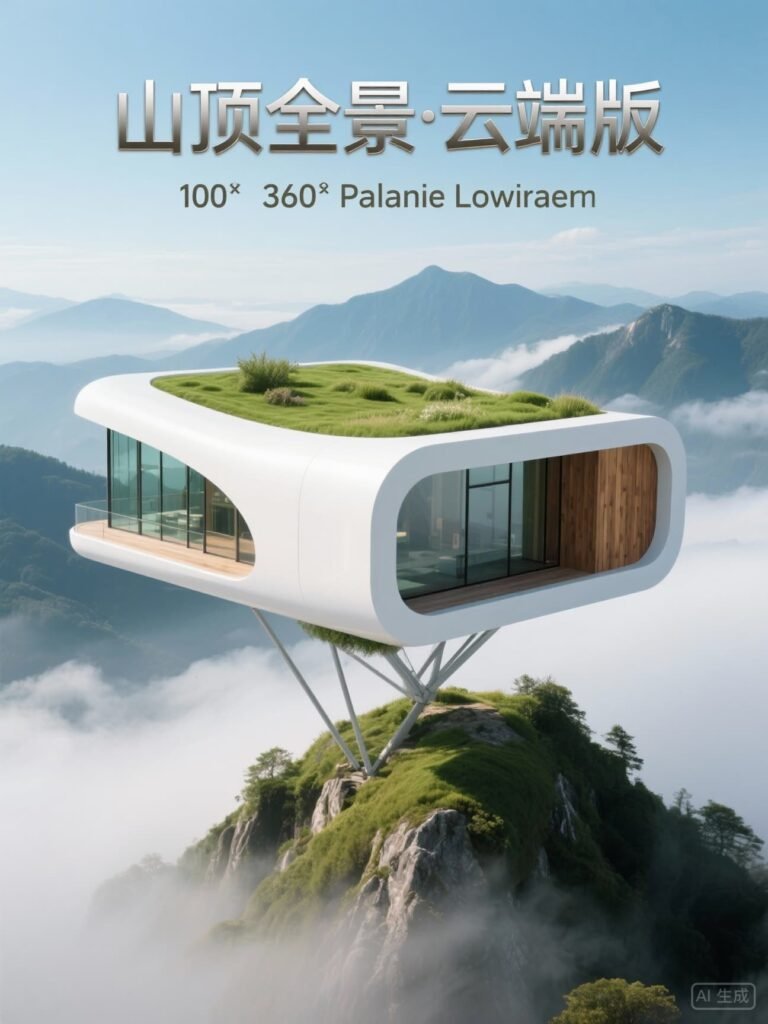 • 地形适应结构:钢结构支架(高度3-5m可调),桩基础(直径300mm,入土深度≥2.5m)适应山地地形 • 抗风设计:流线型主体(风荷载系数0.45),屋顶配重(每平米150kg),抗风掀力≥1.5kN/m² • 生态保护:模块化组装(现场施工周期15天),减少场地扰动,建筑基底面积仅占总用地的15%
